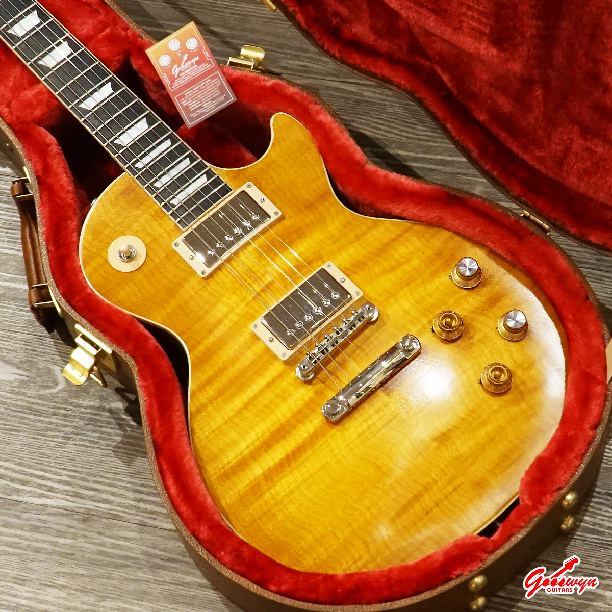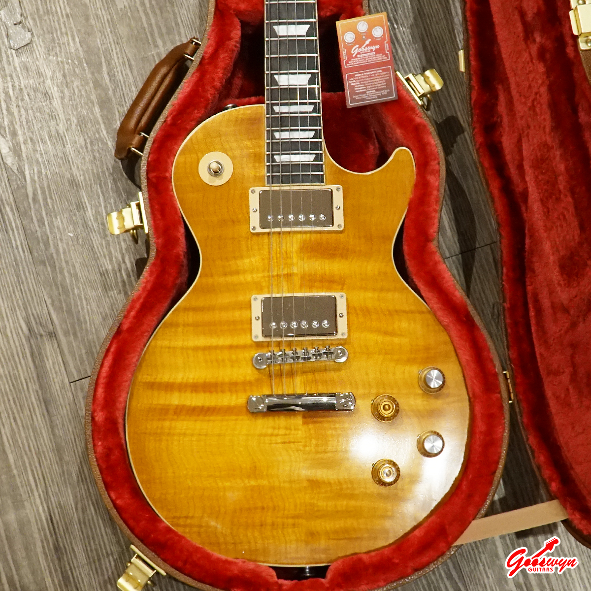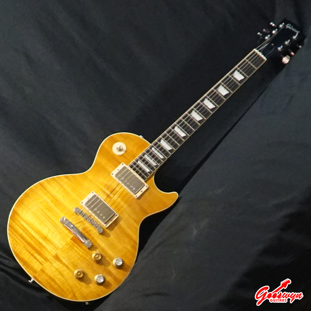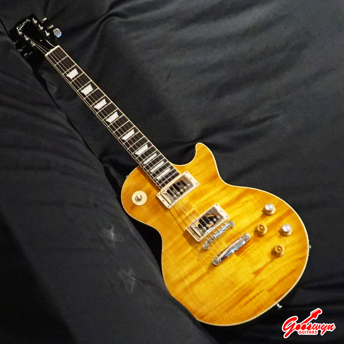 – UNCHAMBERED BODY, MAHOGANY BODY WITH AAA FLAME MAPLE TOP. MAHOGANY NECK, ROSEWOOD FINGERBOARD